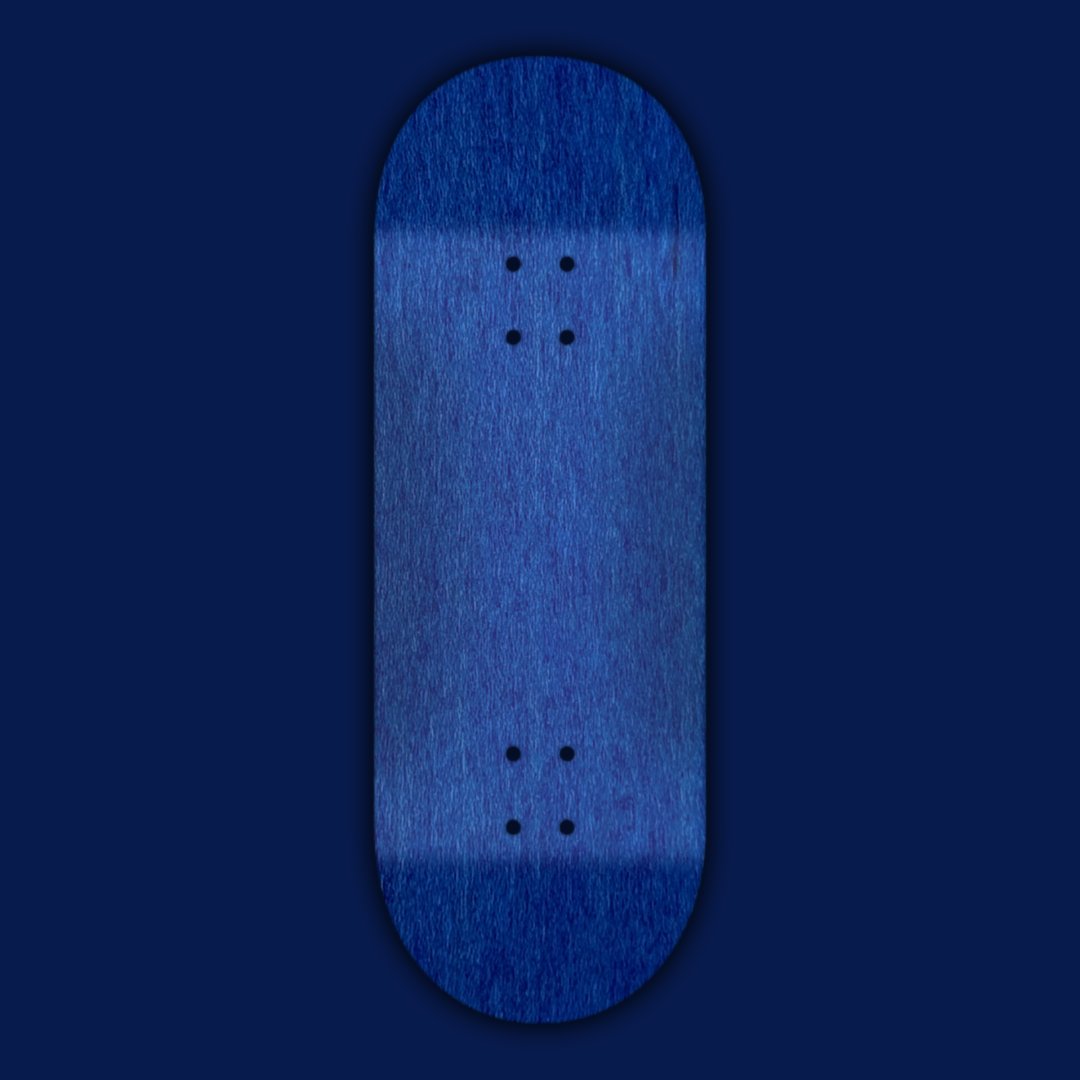 Colour dyed wooden fingerboard deck featuring the Blue colour— handcrafted in Switzerland with precision, style, and soul. Each deck is custom-made to your specs using premium materials and refined techniques, built for riders who value true craftsmanship.