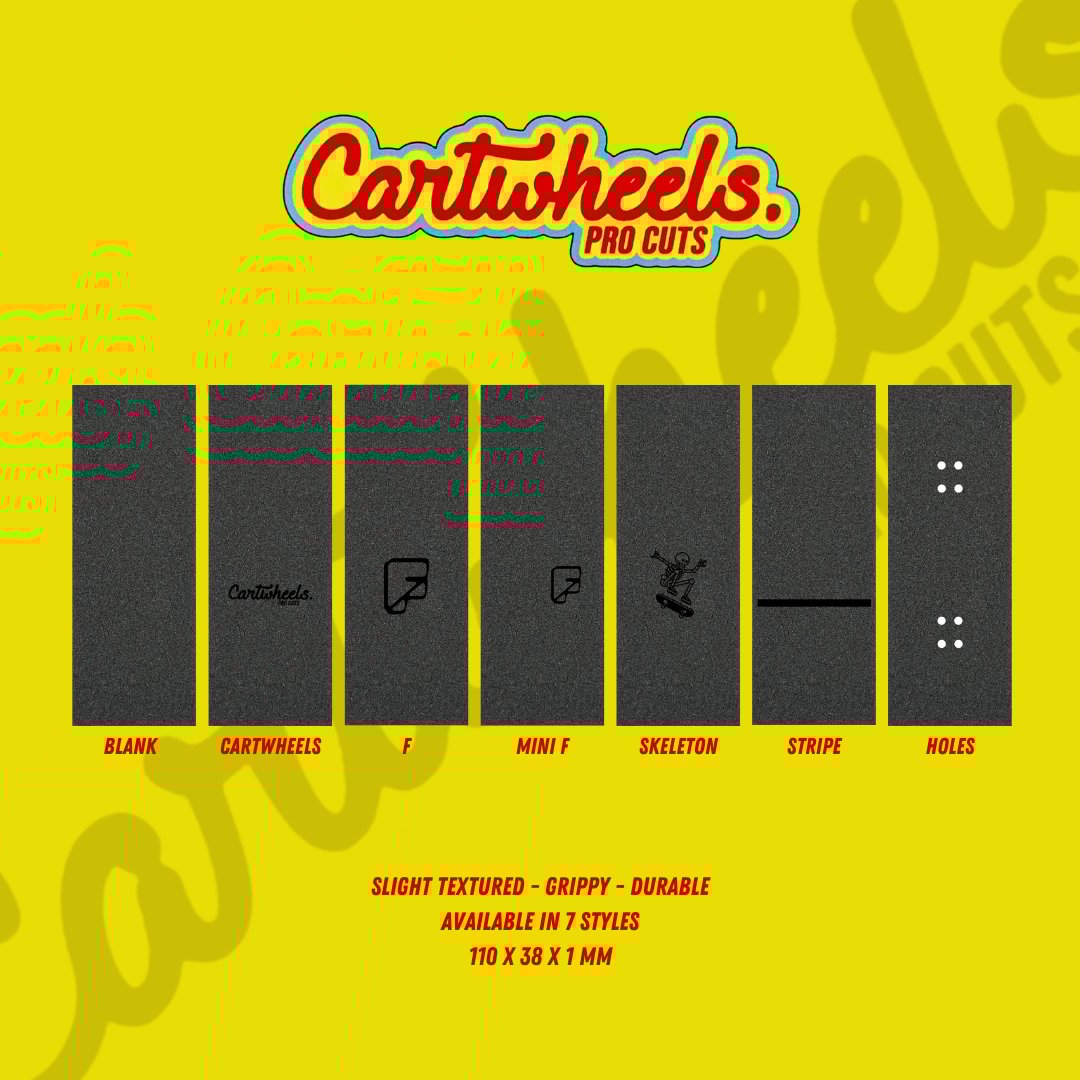 Cartwheels Pro Cuts fingerboard grip tape. Exceptional performance and durability!