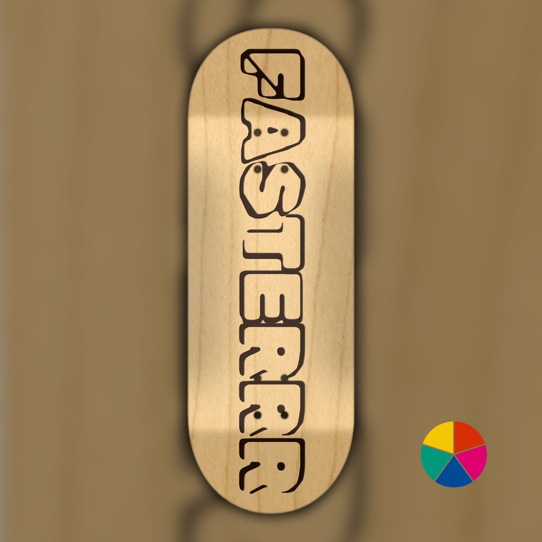 Engraved wooden fingerboard deck featuring the Fasterrr design — handcrafted in Switzerland with precision, style, and soul. Each deck is custom-made to your specs using premium materials and refined techniques, built for riders who value true craftsmanship.