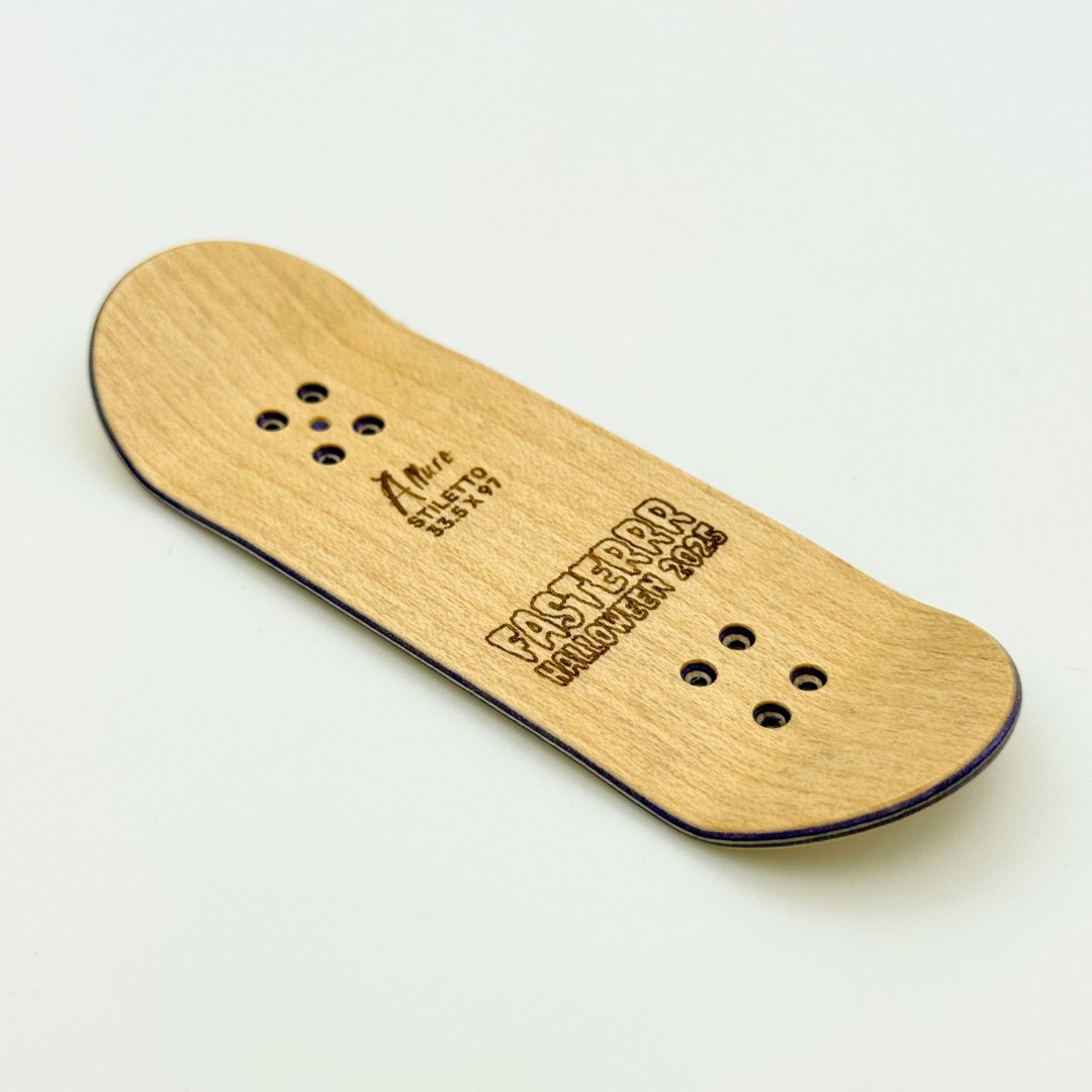 Halloween 2025 drop split ply wooden fingerboard deck featuring the Fasterrr Scream design — handcrafted in Switzerland with precision, style, and soul. Each deck is made using premium materials and refined techniques, built for riders who value true craftsmanship.
