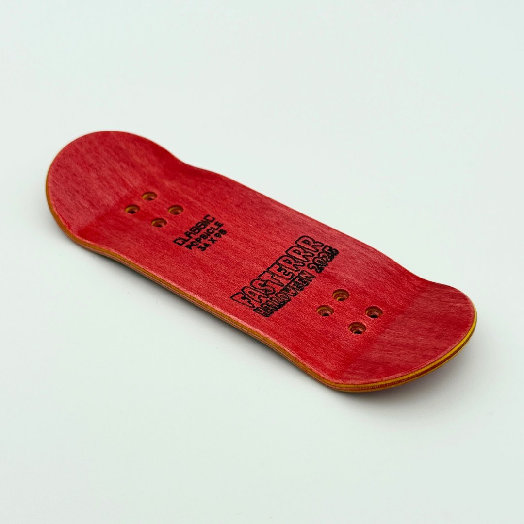 Halloween 2025 drop split ply wooden fingerboard deck featuring the Fasterrr Scream design — handcrafted in Switzerland with precision, style, and soul. Each deck is made using premium materials and refined techniques, built for riders who value true craftsmanship.