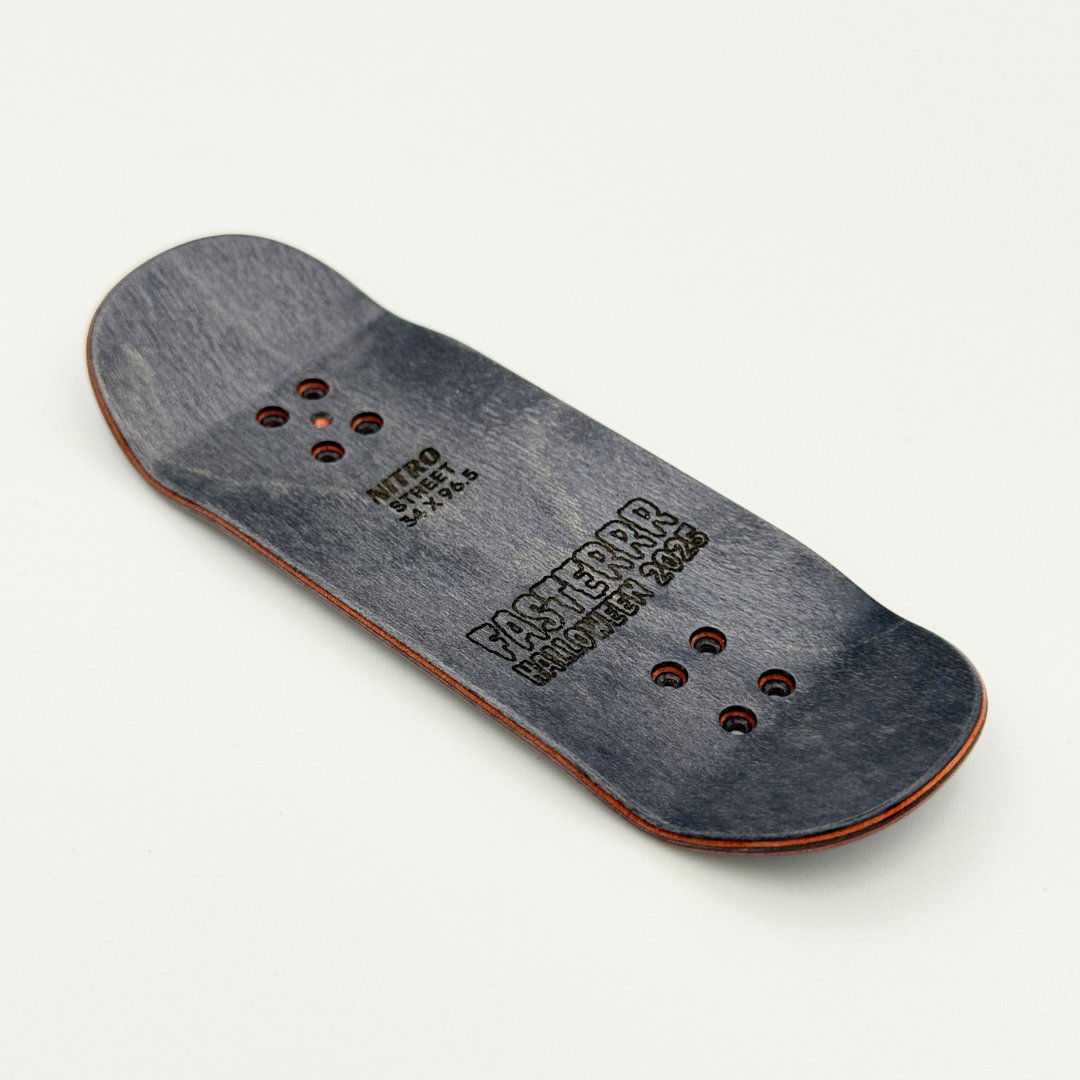Halloween 2025 drop split ply wooden fingerboard deck featuring the Fasterrr Scream design — handcrafted in Switzerland with precision, style, and soul. Each deck is made using premium materials and refined techniques, built for riders who value true craftsmanship.