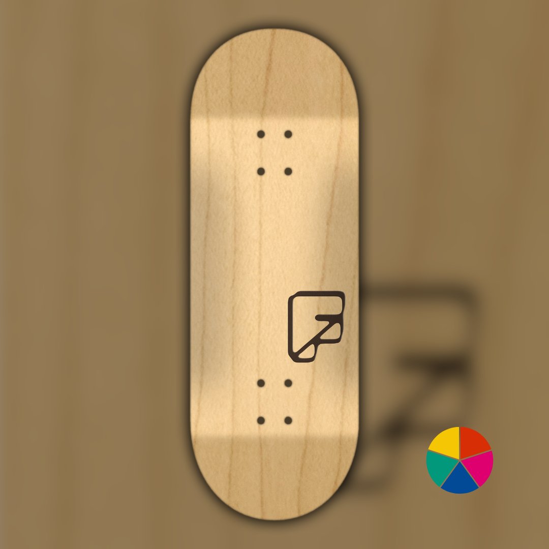 Engraved wooden fingerboard deck featuring the Mini F design — handcrafted in Switzerland with precision, style, and soul. Each deck is custom-made to your specs using premium materials and refined techniques, built for riders who value true craftsmanship.